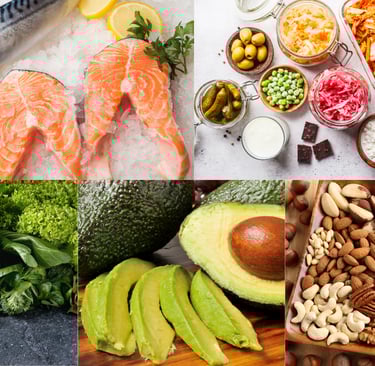 Healthy fats are essential for hormone production — especially estrogen and progesterone. Fatty fish are rich in omega-3 fatty acids, which help reduce inflammation, support brain health, and improve mood.