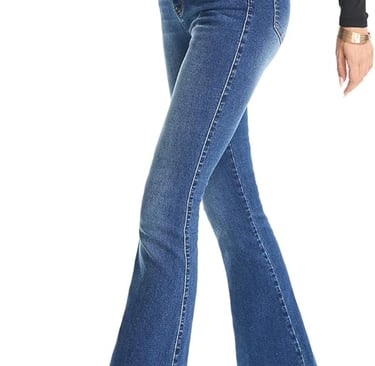 High-waisted jeans, trousers, and skirts visually raise your waistline, making your legs appear longer.