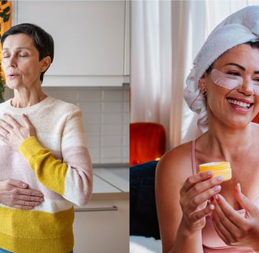 Just 2–3 minutes of slow, deep breathing helps lower cortisol and activates the parasympathetic nervous system (your calm mode).